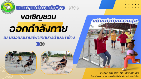 ขอเชิญชวนผู้สูงอายุและประชาชนหันมาใส่ใจสุขภาพด้วยการออกกำลังกาย ณ บริเวณสนามกีฬาเทศบาลตำบลท่าช้าง