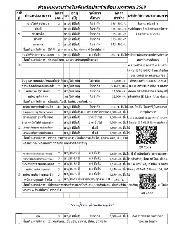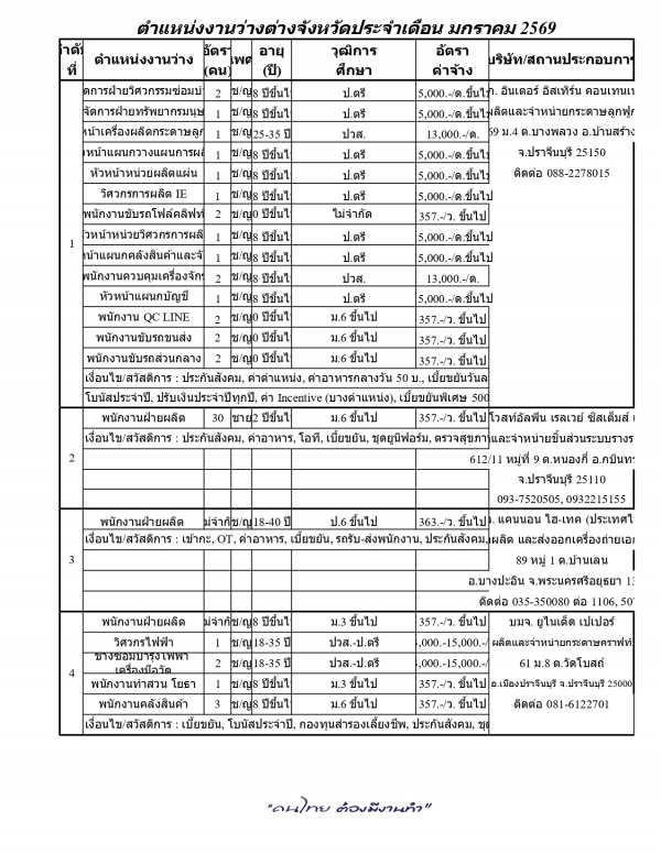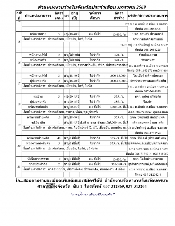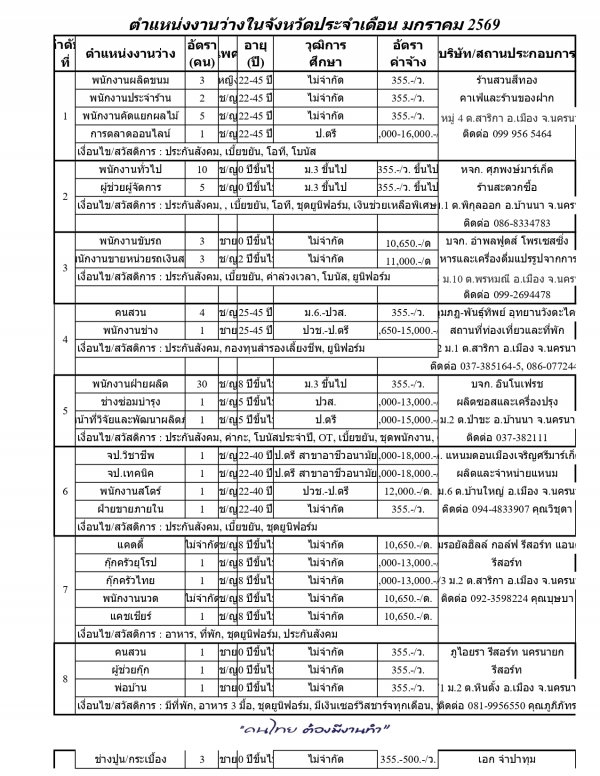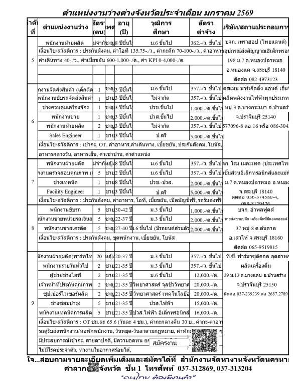ประชาสัมพันธ์เทศบาลตำบลท่าช้าง เรื่อง สำนักงานจัดหางานจังหวัดนครนายก แจ้งประชาสัมพันธ์ตำแหน่งว่างในจังหวัดประจำเดือนมกราคม 2569