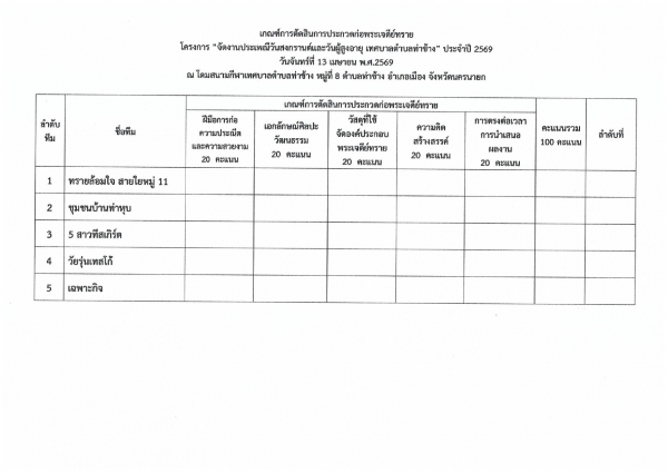 ประชาสัมพันธ์เทศบาลตำบลท่าช้าง ผลการจับสลากลำดับการแข่งขันการประกวดก่อพระเจดีย์ทราย"โครงการจัดงานประเพณีสงกรานต์และวันผู้สูงอายุเทศบาลตำบลท่าช้าง" ประจำปี 2569